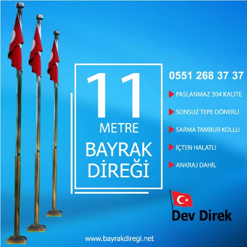 - 11 metre Bayrak Direğinin tepesinde 360 derece rüzgarın yönüne göre dönen bir tepe döner vardır. Bu tepe döner 11 metre bayrağın rüzgarın esmesi ile beraber direği dolanmaması için geliştirilmiştir.