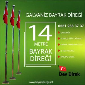 Dev Direk tarafından üretilen paslanmaz galvaniz bayrak direkleri sağlam, uygun fiyatlı ve uzun ömürlüdür. Galvanizden ürettiğimiz bayrak direkleri genellikle 20 metre ile 50 metre arasındaki dev bayrak direkleri dir. Bu direkler askeriye, anıt, akaryakıt istasyonu, jandarma, spor kulübü, otel, şirket, şehitlik, kamu kurumu, organize sanayi bölgesi, özel hastaneler, holding, firma, site, sağlık ocağı, tarihi alanlar, diş polikliniği, büyükelçilik, belediye, postane, poliklinik, tıp merkezi, üniversite, şehir meydanları, işletmeler, okul, fabrika, devlet dairesi, hastane, devlet kurumu, özel şirket gibi tüm alanlarda kullanılmaktadır.