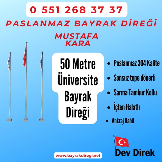 50 metre Paslanmaz Üniversite bayrak direği satan firma Dev Direk olarak, müşterilerine en kaliteli 50 metre paslanmaz çelik bayrak direkleri sunar. Firma, ürünlerinde en son teknolojileri kullanır ve kalite kontrol süreçlerini sıkı bir şekilde takip eder. Ayrıca, müşterilerine uygun fiyatlar sunarak, yüksek kaliteli bayrak direklerini daha erişilebilir hale getirir.