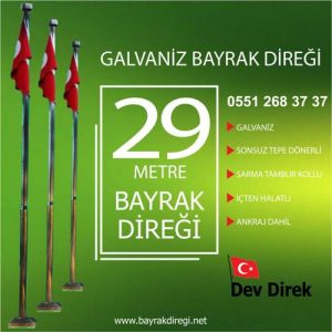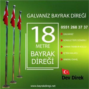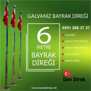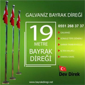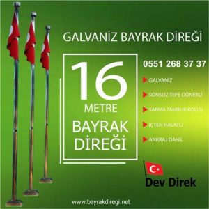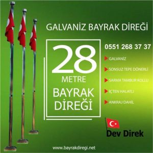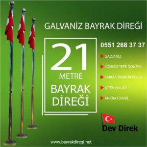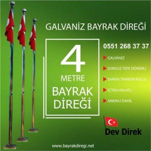 Dev Direk tarafından üretilen paslanmaz galvaniz bayrak direkleri sağlam, uygun fiyatlı ve uzun ömürlüdür. Galvanizden ürettiğimiz bayrak direkleri genellikle 20 metre ile 50 metre arasındaki dev bayrak direkleri dir. Bu direkler askeriye, anıt, akaryakıt istasyonu, jandarma, spor kulübü, otel, şirket, şehitlik, kamu kurumu, organize sanayi bölgesi, özel hastaneler, holding, firma, site, sağlık ocağı, tarihi alanlar, diş polikliniği, büyükelçilik, belediye, postane, poliklinik, tıp merkezi, üniversite, şehir meydanları, işletmeler, okul, fabrika, devlet dairesi, hastane, devlet kurumu, özel şirket gibi tüm alanlarda kullanılmaktadır.