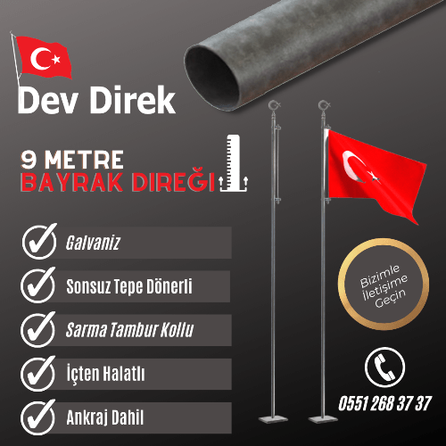 9 Metre Galvaniz Bayrak Direği 0551 268 37 37